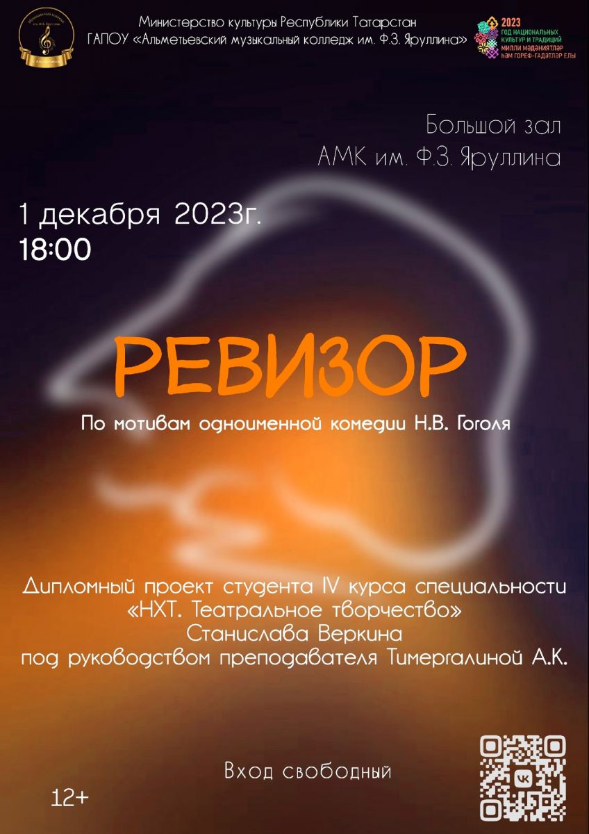 1 Декабря 2023 г. в 18:00 - Спектакль по мотивам комедии Н.В.Гоголя "Ревизор" АФИША