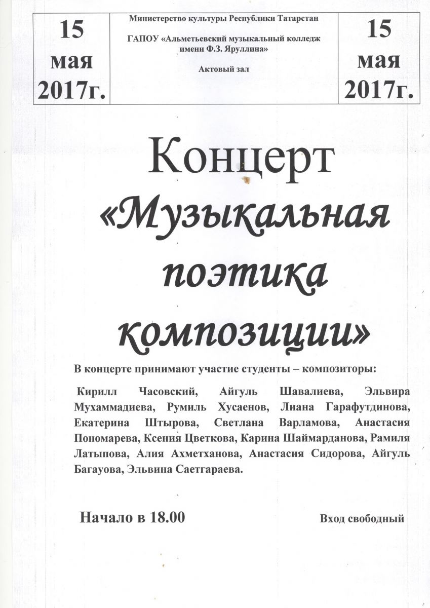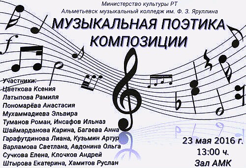 23.05.16г. Концерт студентов-композиторов "Музыкальная поэтика композиции" Афиша