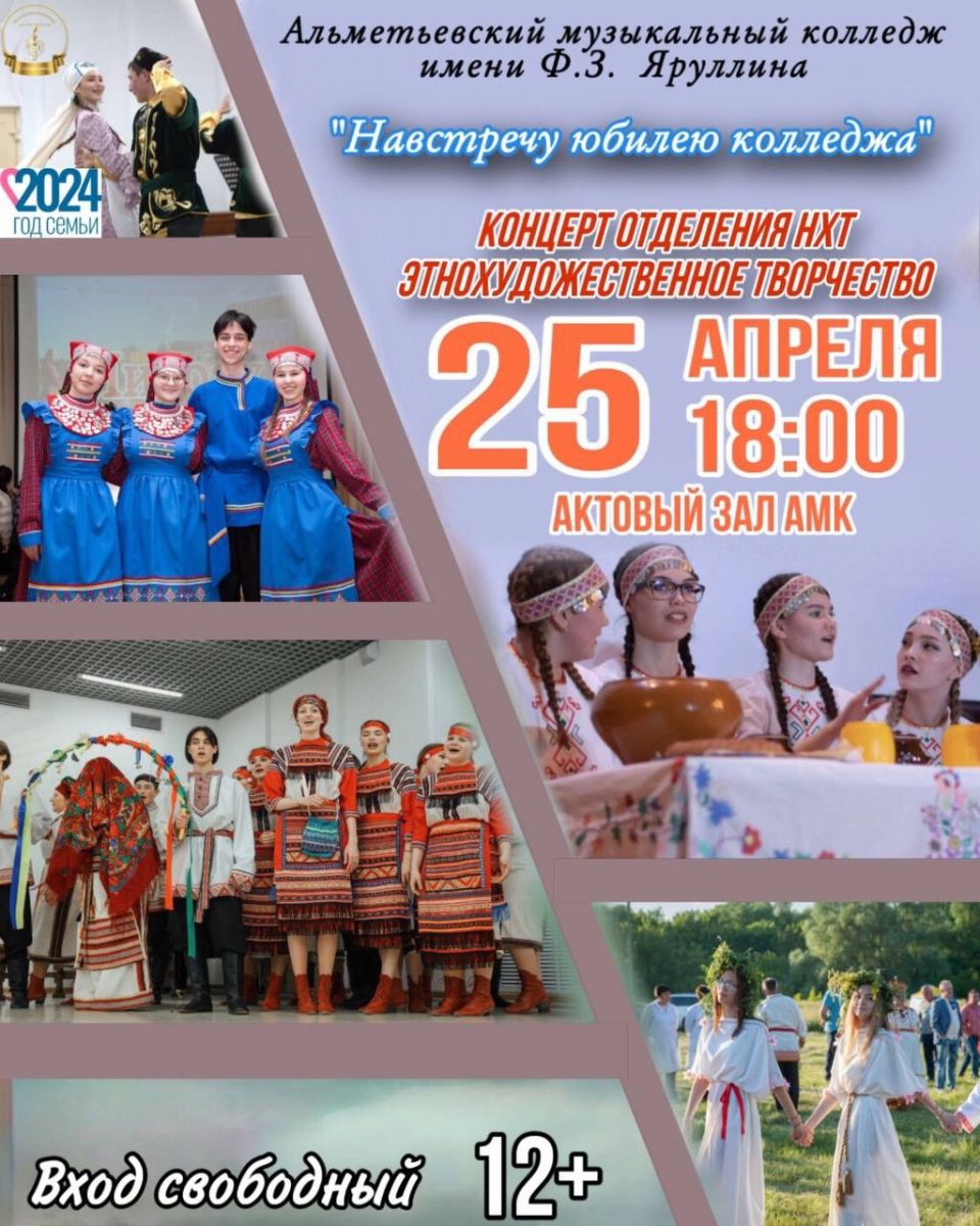 25 Апреля 2024 г. в 18:00 - Отчетный концерт специальности "НХТ.Этнохудожественное творчество" АФИША
