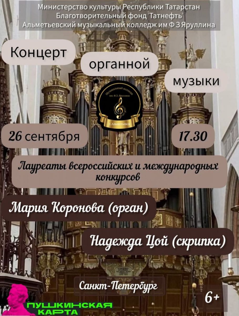 29 Сентября 2023 г. в 18:00 - Органный концерт АФИША БИЛЕТЫ