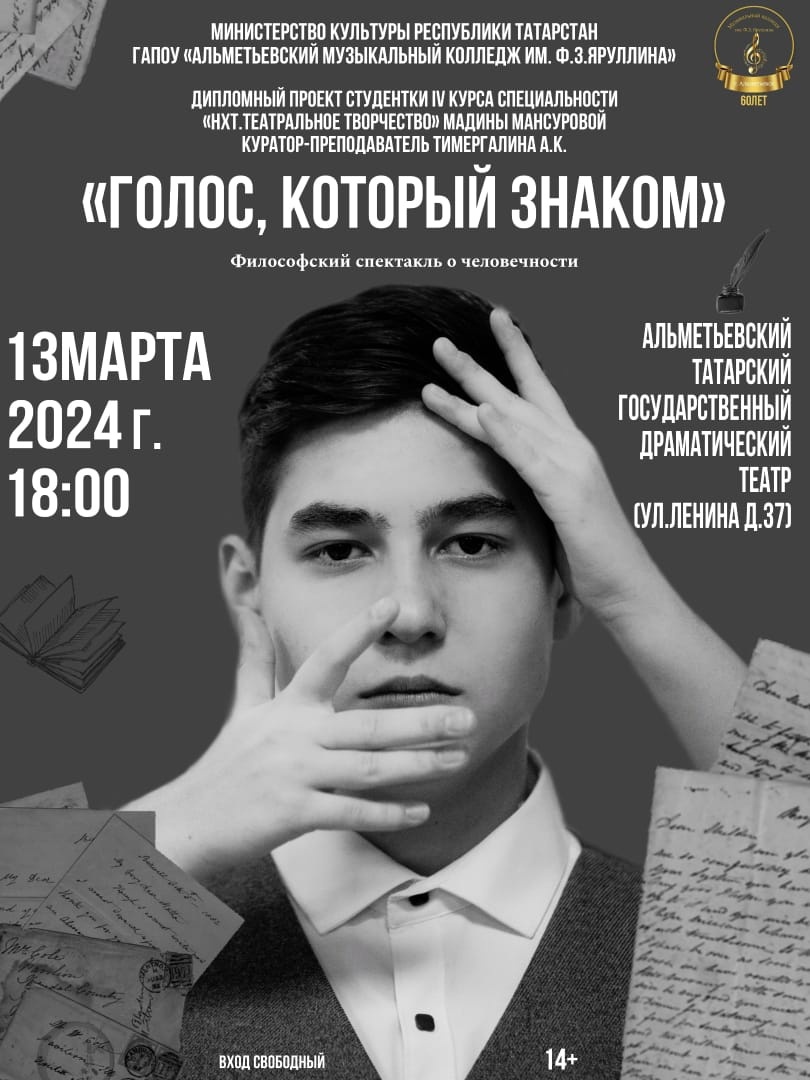 13 Марта 2024 г. в 18:00 - Показ дипломного спектакля "Голос, который знаком" АФИША