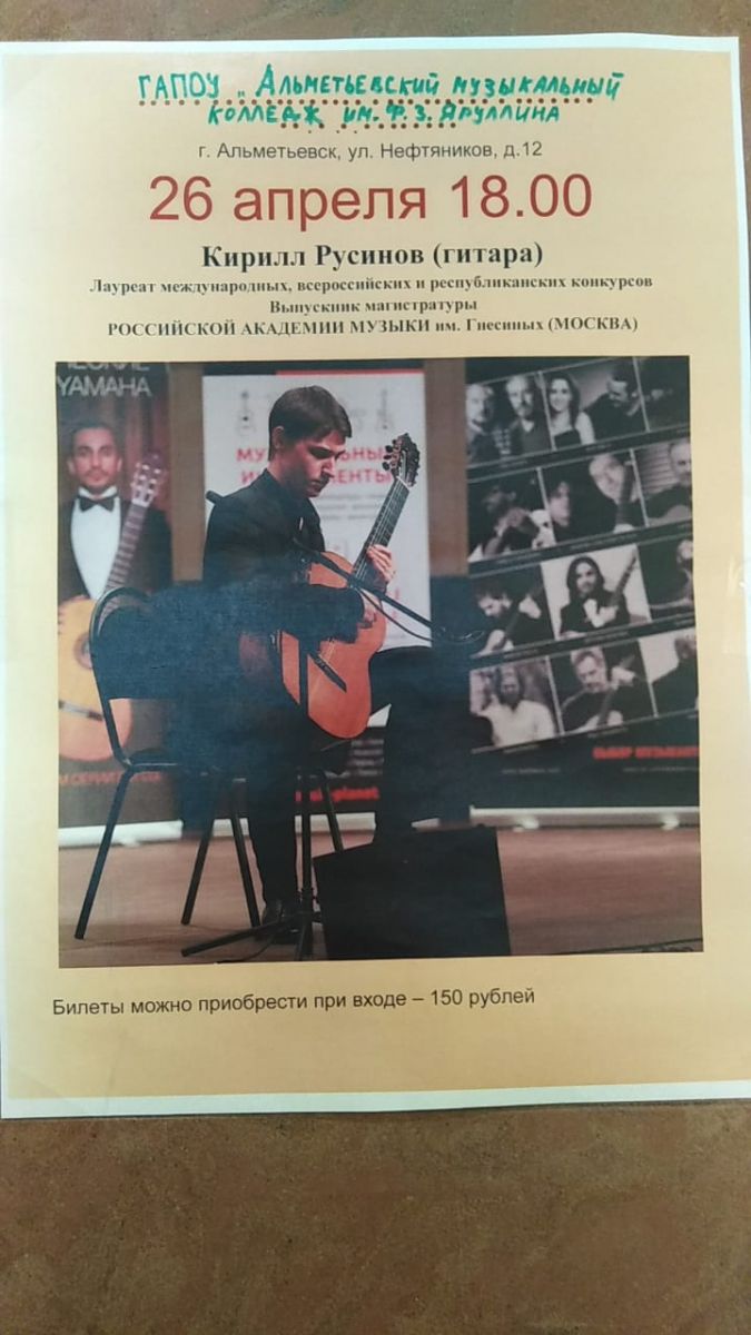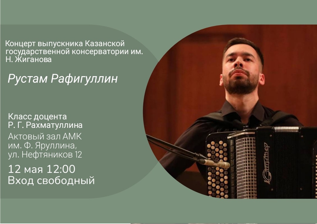 12 Мая 2023 г. в 12:00 - Концерт выпускника Казанской государственной консерватории им.Н.Г.Жиганова Рустама Рафигуллина АФИША
