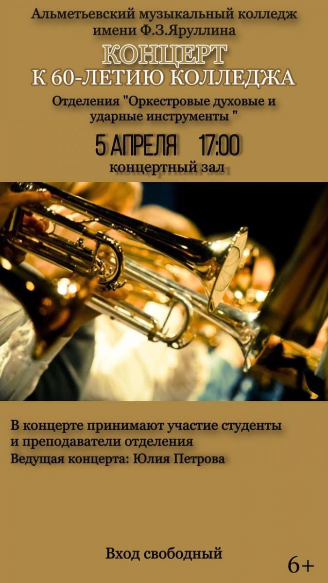 14 Апреля 2023 г. в 18:00 - Концерт отделения «Оркестровые духовые и ударные инструменты»
