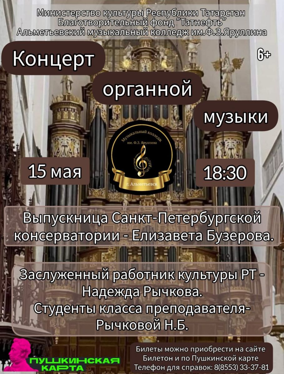15 Мая 2024 г. в 18:30 - Концерт органной музыки "Вне времени и на все времена" АФИША БИЛЕТЫ
