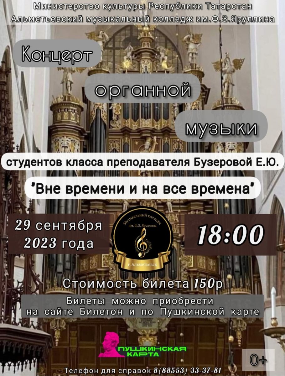 10 Ноября 2023 г. в 18:00 - Концерт органной музыки "Вне времени и на все времена" АФИША БИЛЕТЫ