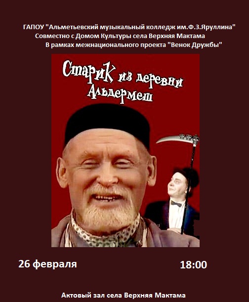 26.02.16г. "Старик из деревни Альдермеш" в рамках проекта "Венок Дружбы" Афиша