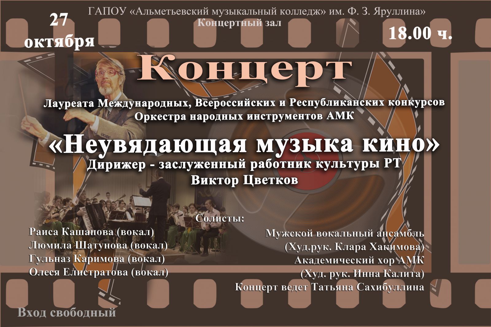 27.10.16г. Концерт посвященный году кино - 2016г. "Неувядающая музыка кино" Афиша