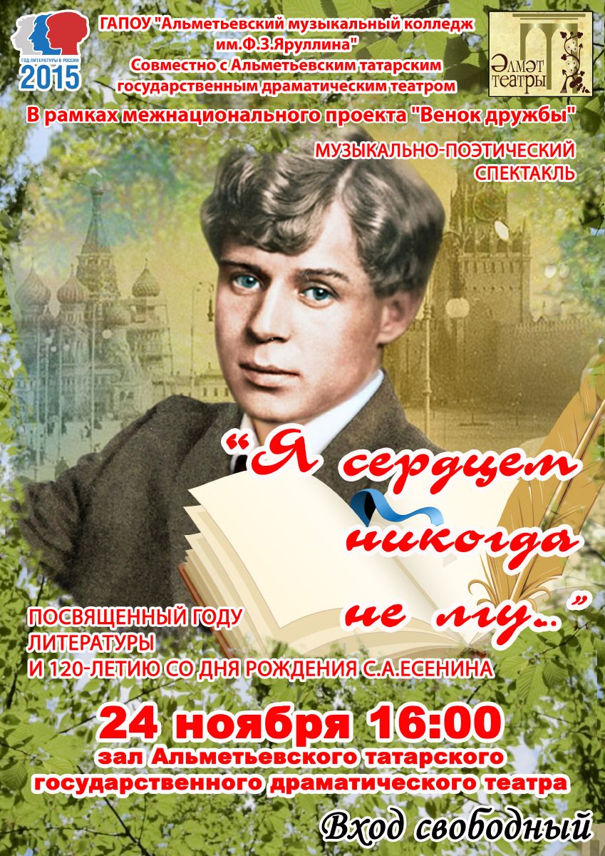 24.10.15г. Музыкально -поэтический спектакль "Я сердцем никогда не лгу..." Афиша