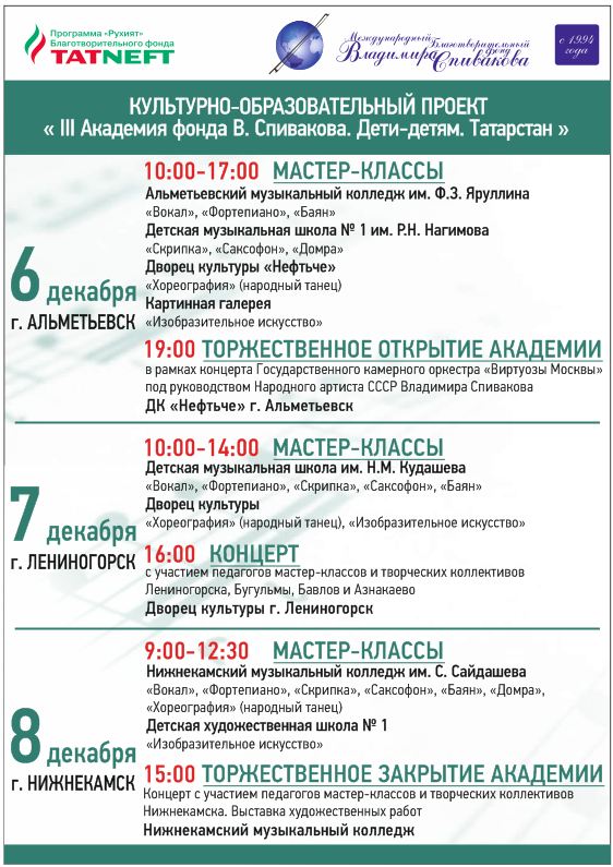 18.11.16г. Мастер-классы в рамках Культурно-образов. проекта «Академия фонда Владимира Спивакова. Дети – детям. Татарстан» Афиша