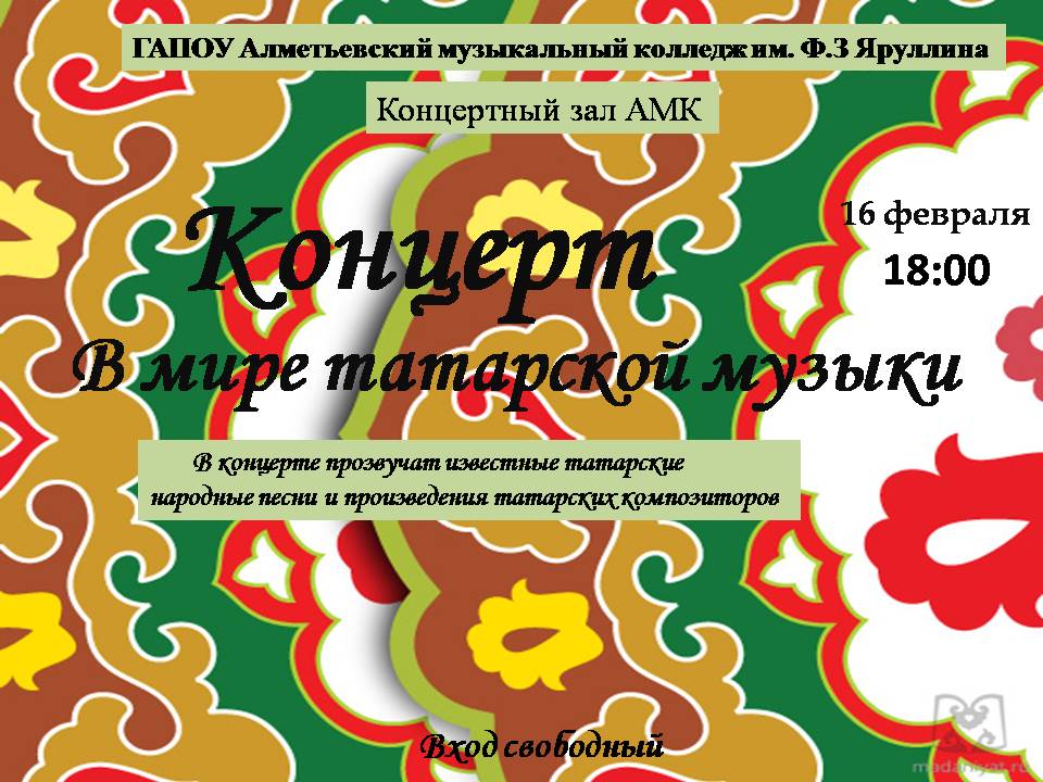 25.02.16г. Концерт "В мире татарской музыки" Афиша