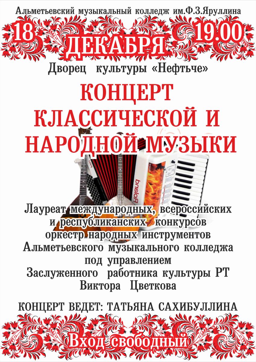 18.12.15 г. Концерт классической и народной музыки Афиша