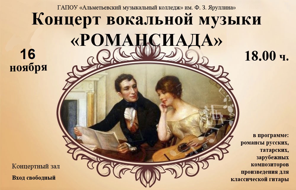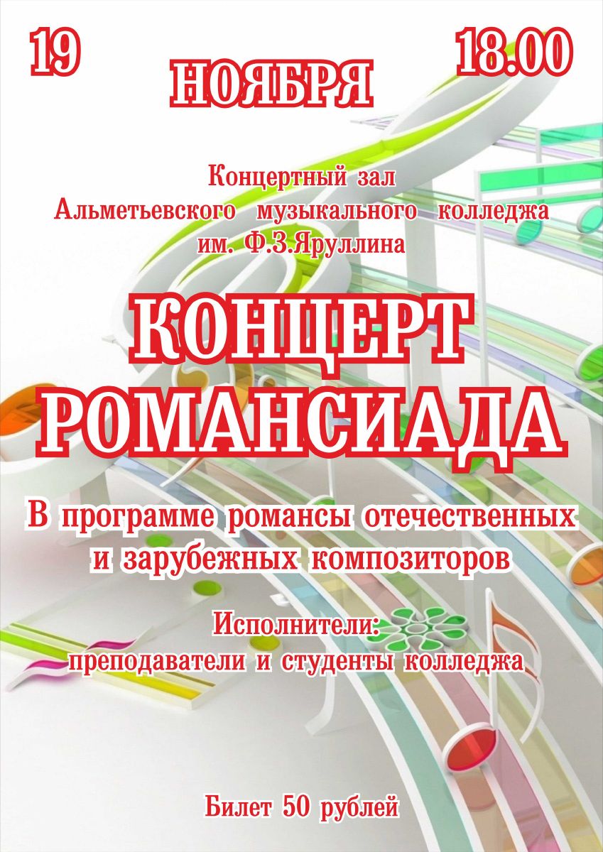 17.11.16г. Концерт вокальной музыки "Романсиада" Афиша