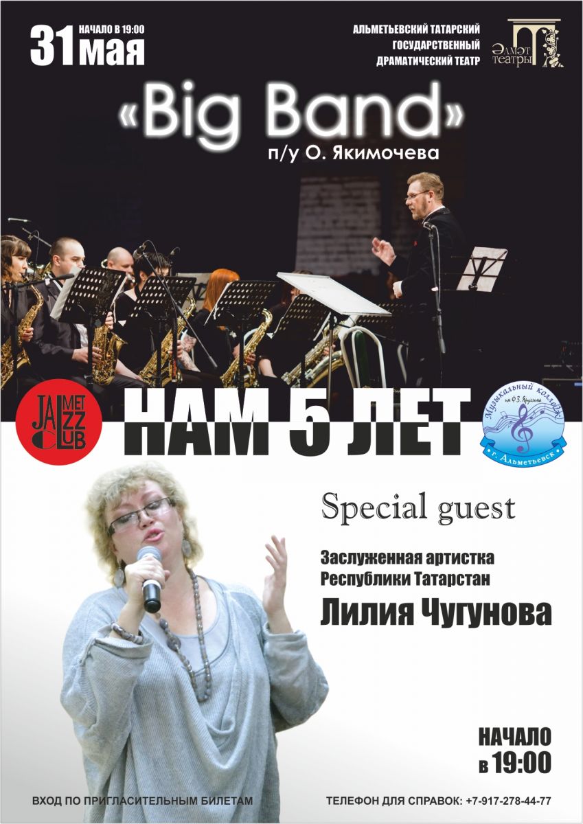 31.05.16г. Концерт джазовой музыки "Big Band" в честь пятилетия группы Афиша