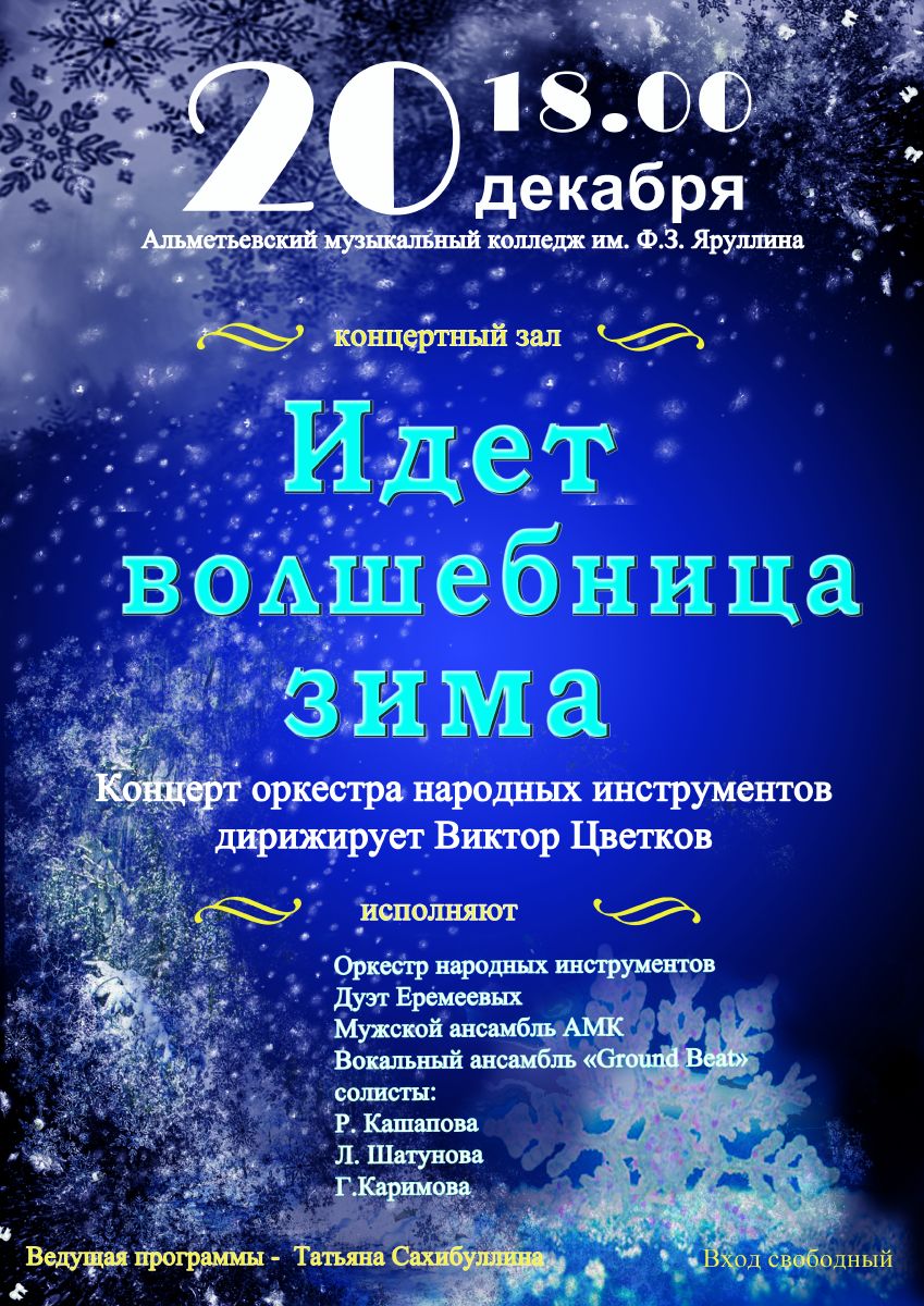 20.12.16г. Концерт оркестра народных инструментов "Идет волшебница зима" Афиша