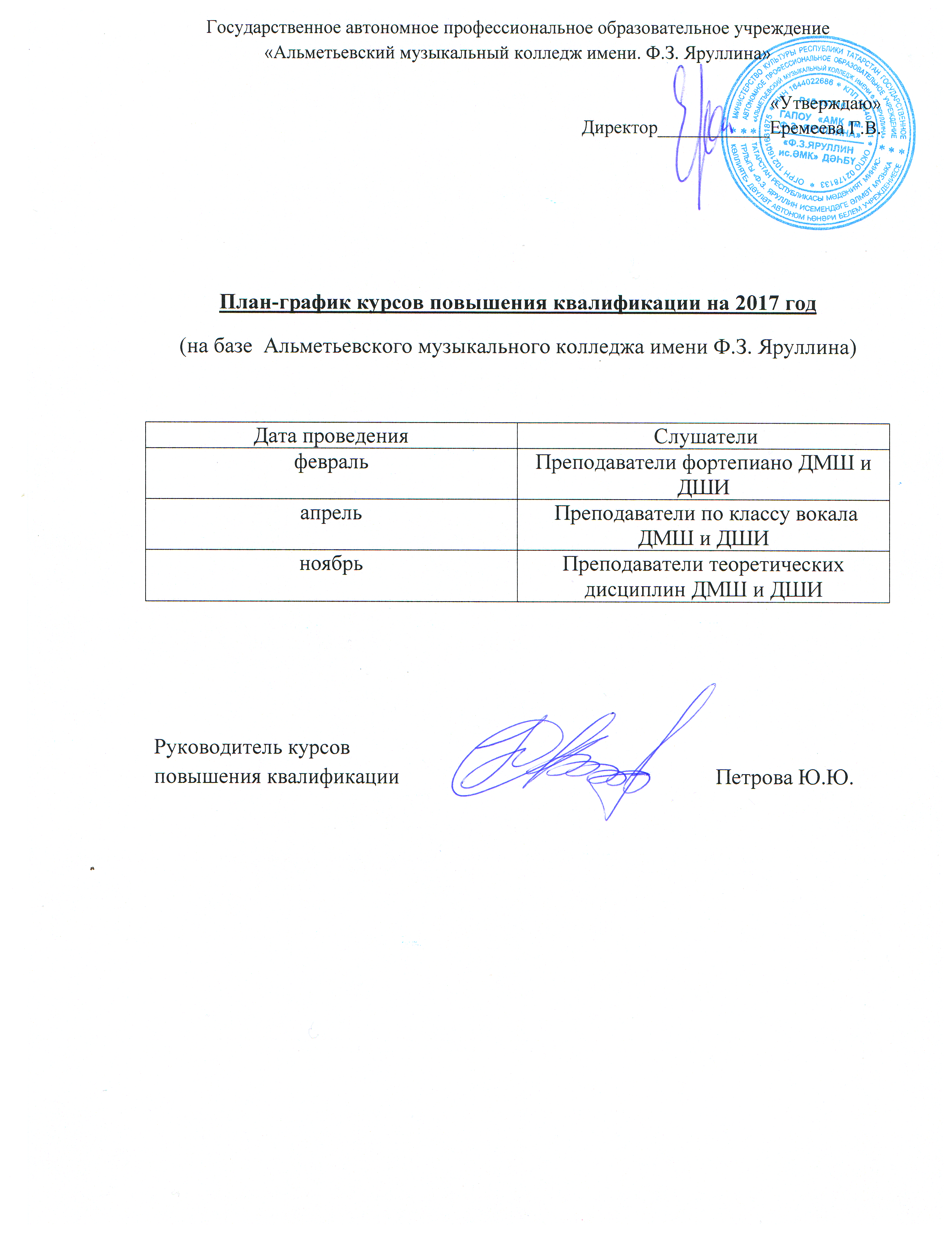 План-график проведения курсов повышения квалификации на 2017 год (на базе АМК)