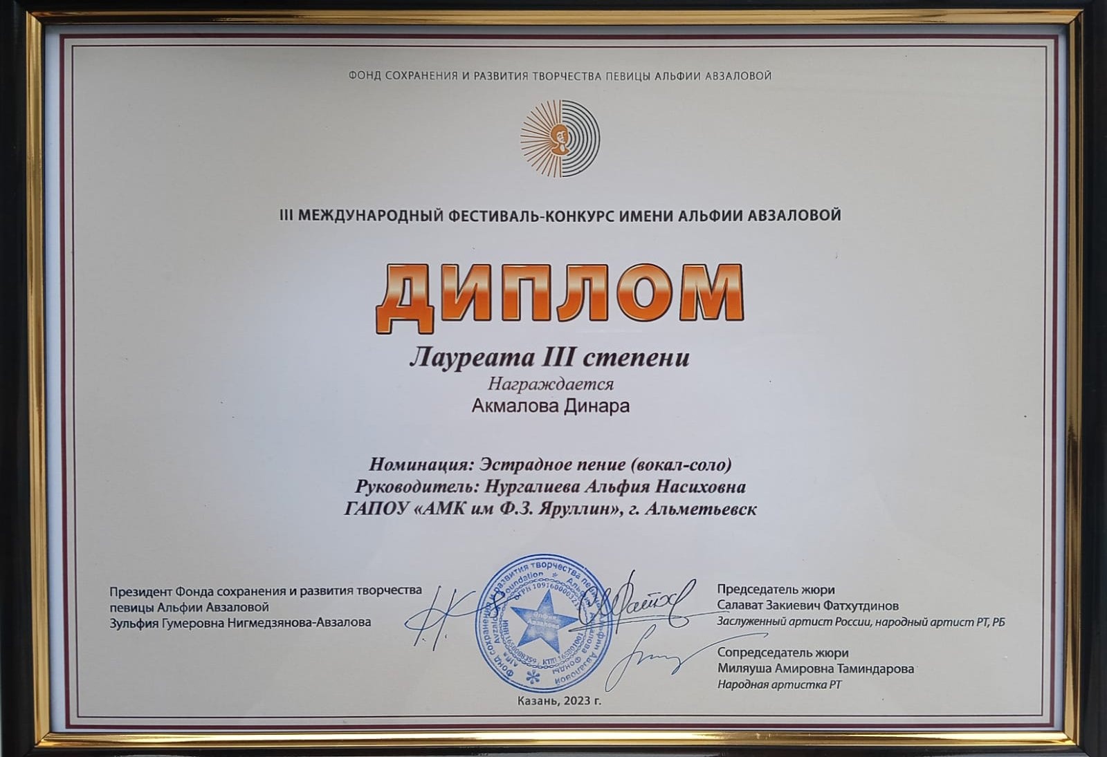 III Международный фестиваль-конкурс имени Альфии Авзаловой.