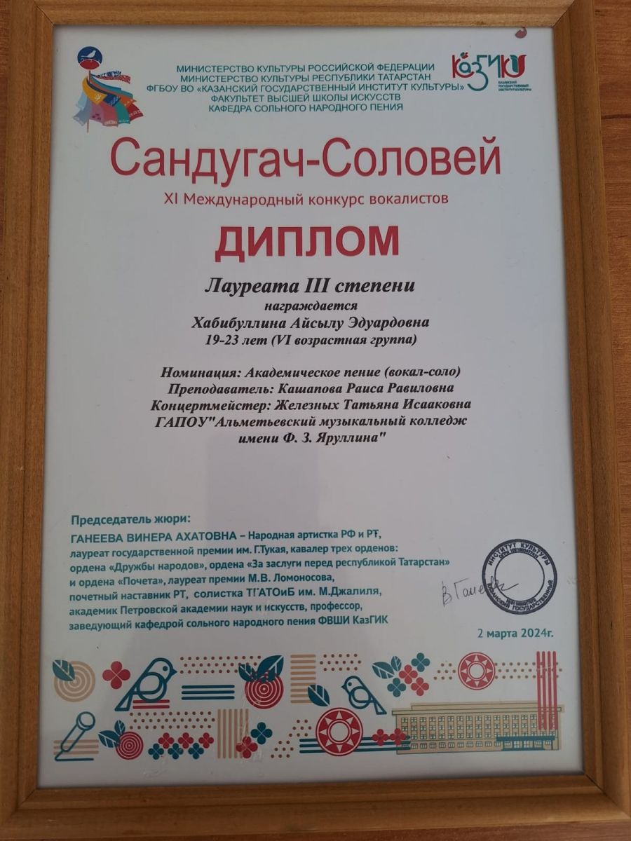 Государственное автономное профессиональное образовательное учреждение «Альметьевский музыкальный колледж имени Ф.З.Яруллина» / «Ф.З. Яруллин исемендәге Әлмәт музыка көллияте» дәүләт автоном һөнәри белем бирү учреждениесе