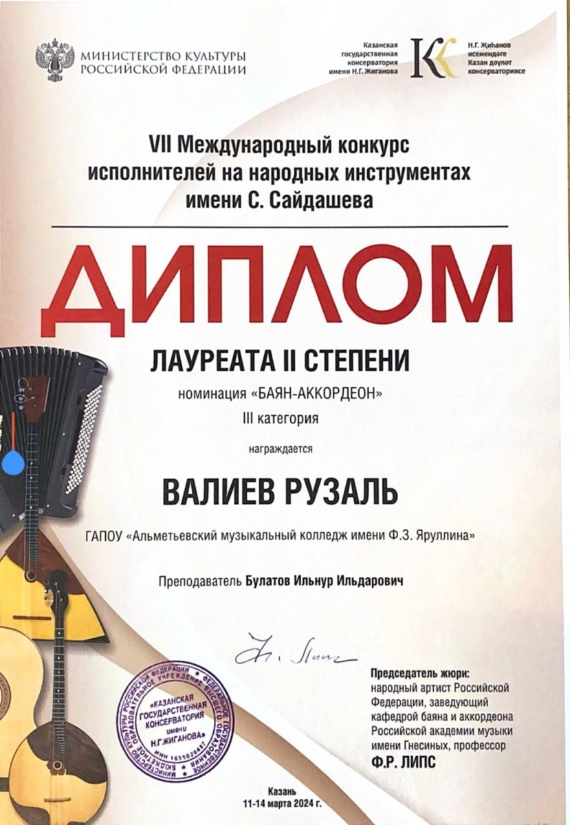Рузаль Валиев - Лауреат ll степени;