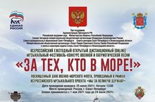 Всероссийский ежегодный открытый дистанционный (online) музыкальный фестиваль-конкурс военной и патриотической песни «За тех, кто в море!», проводимый в рамках Всероссийского музыкального проекта «Мы за Великую Державу», приурочен ко Дню Военно-Морского Флота – 25 июля (последнее воскресение июля месяца). День Военно-Морского Флота был установлен ...