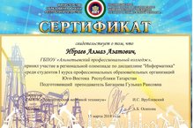 Ибраев Алмаз (11 СЭМ) принял участие в региональной олимпиаде по информатике среди студентов 1 курса профессиональных образовательных организаций Юго-Востока Республики Татарстан, которая прошла сегодня (15.03.2018) в ГАПОУ "Лениногорский нефтяной техникум".