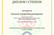 Студенты нашего колледжа Сипатов Э. (11 НМСР), Мухаматов Д. (11СТО), Исакова Р. (11СТМ), Ризванов Д. (31СТМ), Закирова Л. (31СТМ), Габдрахманов Р. (21НМР) приняли участие в VI Международной олимпиаде по татарскому языку "Татар теле Инфо" и заняли призовые места (руководитель Рафигуллина М.М.)