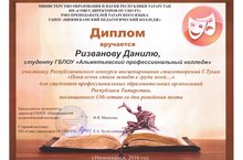 Габдрахманов Р. (21НМР) занял 2 место во Всероссийской викторине по татарскому языку и литературе, посвященной 110-летию со дня рождения М.Джалиля (руководитель Рафигуллина М.М.)