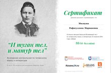Рафигуллина М.М. - преподаватель татарского языка и литературы участвовала во Всемирной контрольной по татарскому языку и литературе и успешно прошла прошла Всемирный тест (35/35 баллов)