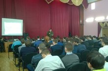Ребят проинформировали о возможности дальнейшего обучения в военных обравотальных учреждениях Министерства обороны РФ.