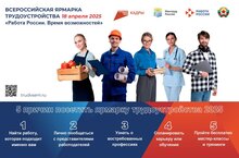 Кадровый центр «Работа России» г.Альметьевска организует всероссийскую ярмарку трудоустройства на региональном этапе 18.04.2025г. с 09:00 час. в ДК «Нефтьче» ул. Ленина д.98 с предприятиями города и района.