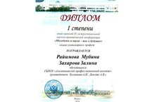 За участие в IX очно-заочной межрегиональной научно-практической конференции "Молодежь и наука - шаг в будущее" они награждены Дипломом I степени, секция гуманитарного профиля... -