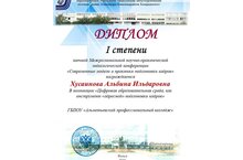 Преподаватель английского языка Хусаинова А.И. стала победителем в заочной Межрегиональной научно-практической конференции "Современные модели и практики подготовки кадров", номинация "Цифровая образовательная среда, как инструмент "адресной" подготовки кадров".