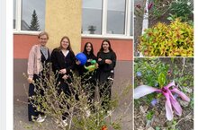 Любовались цветением магнолии. На фото не все студенты - строго по желанию)) На фото, уникальная в нашем регионе белая магнолия и только зацветает ярко-розовая магнолия. -