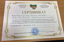 Студент гр. 31 ССП Гафиятуллин Булат Анисович награжден Сертификатом за участие в Республиканской олимпиаде профессионального мастерства обучающихся по профессии СПО 15.01.05 Сварщик (ручной и частично механизированной сварки (наплавки). Руководитель Погребная А.Э.