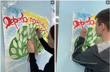В рамках недели добра, волонтеры колледжа наклеили обои в Альметьевском районном сообществе инвалидов.