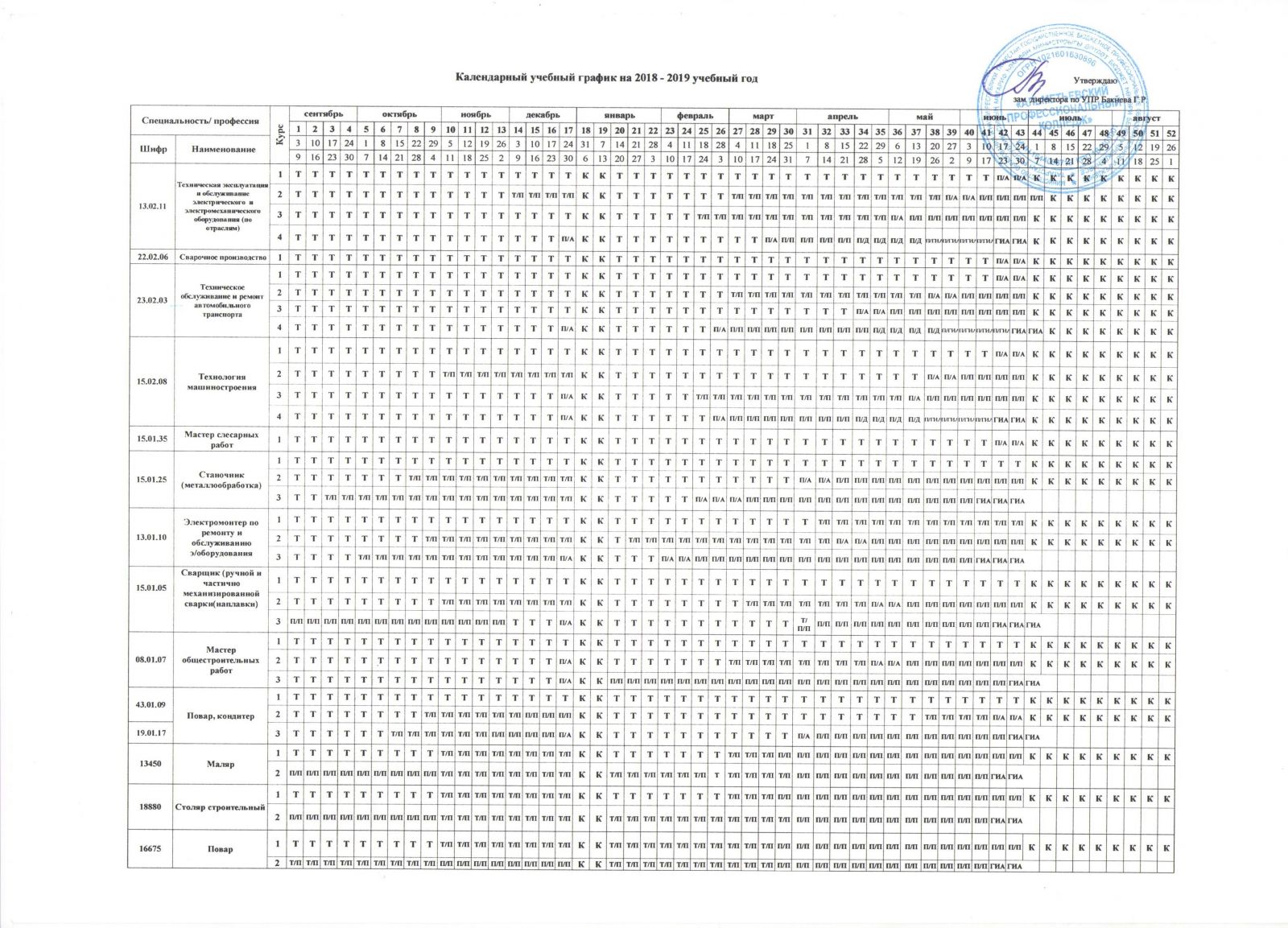 Календарный учебный график 1 курс (Программы профессиональной подготовки)