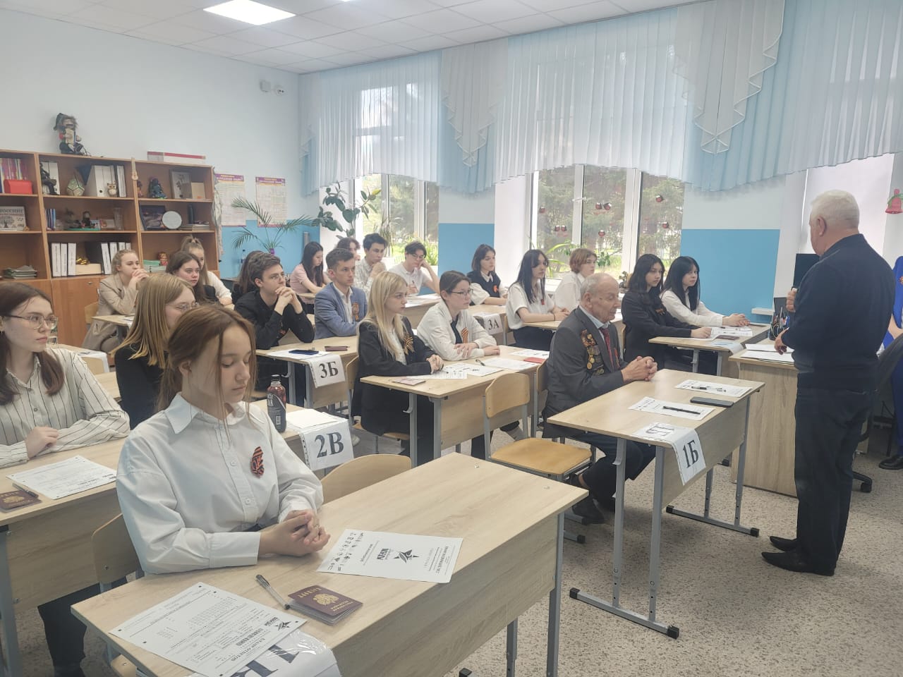 На площадке школы №12, до трансляции церемонии открытия Диктанта Победы, перед ребятами выступил ветеран Великой Отечественной Войны Соколов Анатолий Михайлович (1927 г.р.). Несмотря на то, что ему уже 96 лет, он помнит всё до мелочей. Анатолий Михалович пожелал ребятам быть достойными защитниками своей Родины, не забывать о подвигах своих дедов и прадедов.