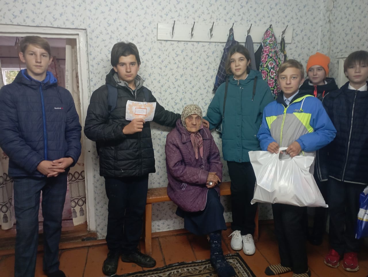 Тимуровцы и классные руководители МБОУ "Новоникольская ООШ" поздравила своих ветеранов труда с Днём Пожилых людей.