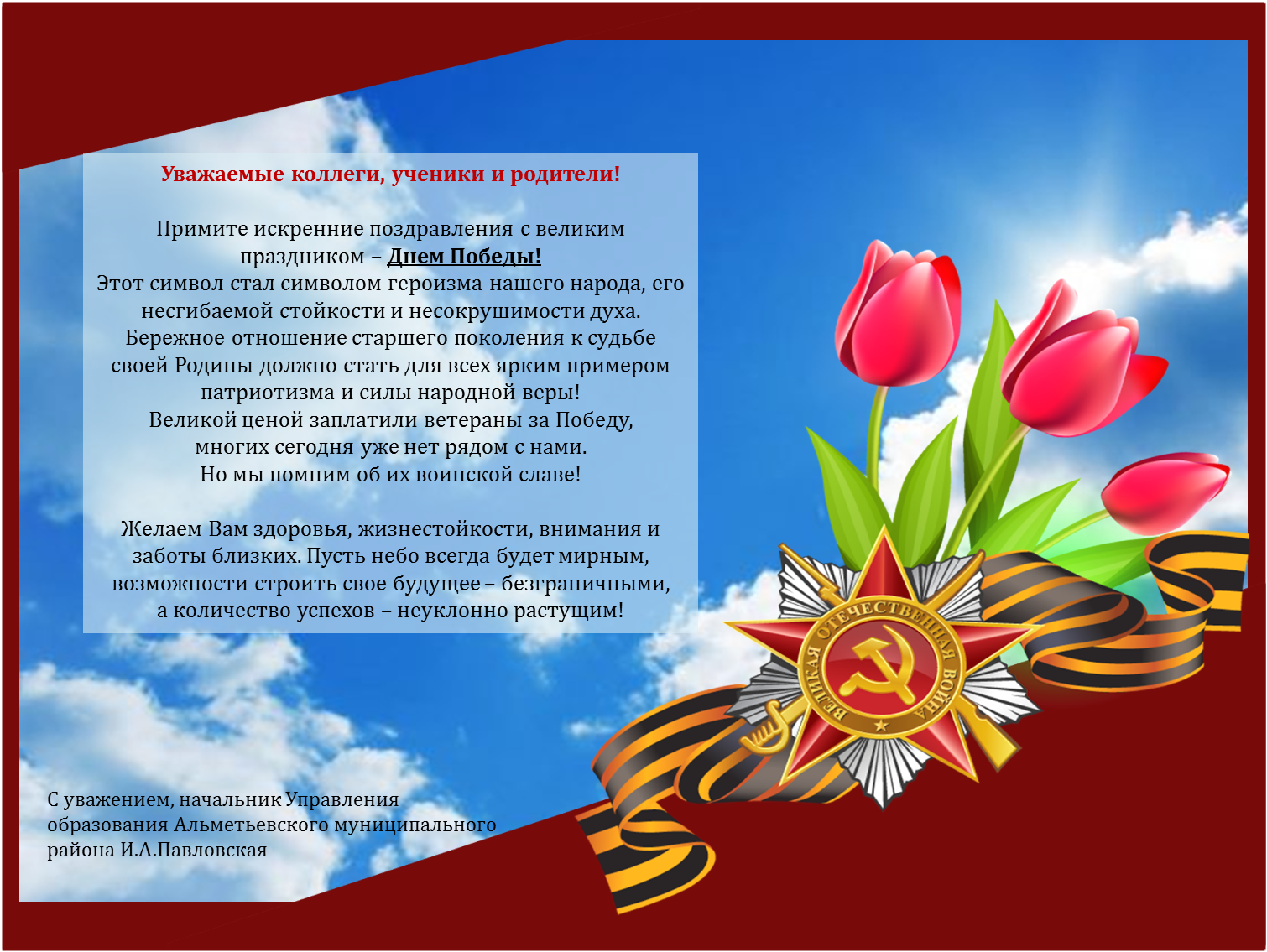 Учреждения образования Альметьевского муниципального района поздравили своих ветеранов и участников Великой Отечественной войны с 76-ой годовщиной Победы. Ветеранам были вручены подарки и поздравительные письма Президента Республики Татарстан, Исполнительного комитетета и Совета ветеранов (пенсионеров) Альметьевского муниципального района.
