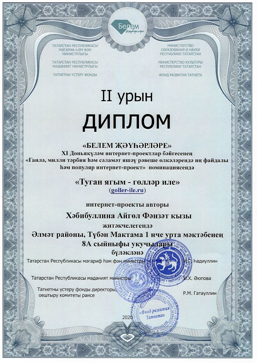 Бүләкләнүчеләр арасында районыбызның Түбән Мактама 1 урта мәктәбенең 8 сыйныф укучылары да бар иде. Алар “Туган ягым – гөлләр иле” проекты белән 2 урынга, шул ук мәктәпнең татар теле һәм әдәбияты укытучысы Хәбибуллина А.Ф. “Укытучы-җәүһәр” номинациясендә шулай ук 2 урынга лаек булды.