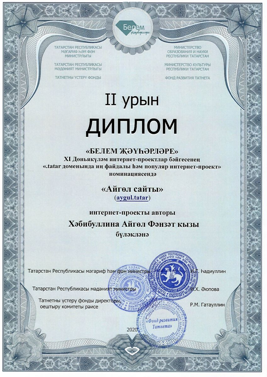 25 ноября 2020 года в Государственном Совете состоялось подведение итогов республиканских конкурсов «Лучшая практика обучения на родном (татарском, чувашском, удмуртском, марийском, мордовском) языке в муниципальных бюджетных общеобразовательных организациях Республики Татарстан» и «Лучший детский сад по организации обучения и воспитания детей на родном (татарском, чувашском, удмуртском, марийском, мордовском) языке». Среди победителей МБДОУ «Детский сад общеразвивающего вида №58 «Шаян нәниләр» Альметьевского муниципального района. Поздравляем!