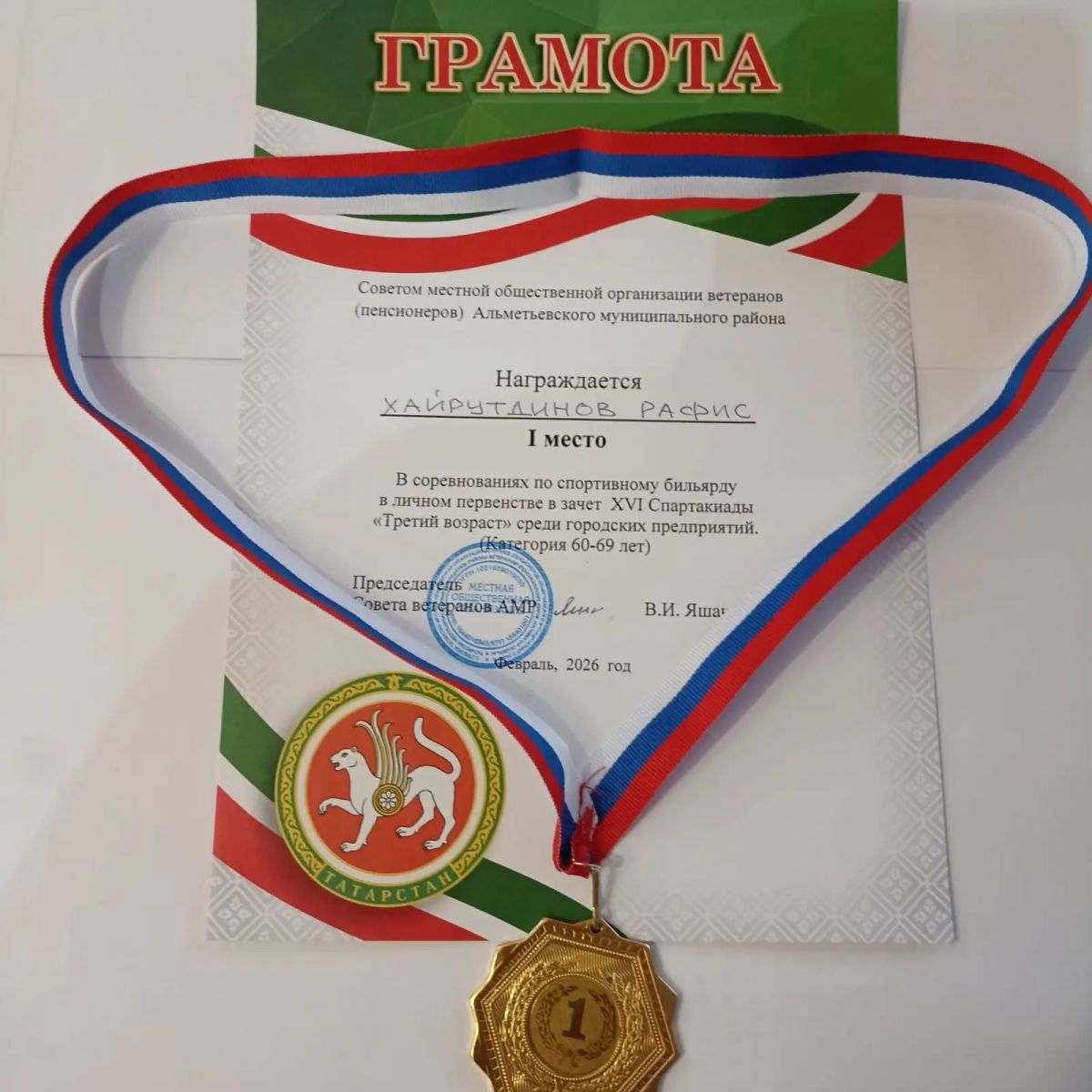 Опубликовано: 25.02.2026В канун Дня защитника Отечества Года воинской и трудовой доблести в Республике Татарстан, ветераны педагогического труда образовательных учреждений Альметьевского муниципального района приняли участие в соревнованиях ветеранских организаций города по спортивному бильярду, в рамках XVI спартакиады «Третий возраст».