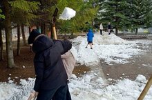 Сегодня в нашей школе прошел субботник! Учащиеся с 9 по 7 классы раскидали нерастаявшие сугробы снега, чтобы привести территорию школы в порядок.