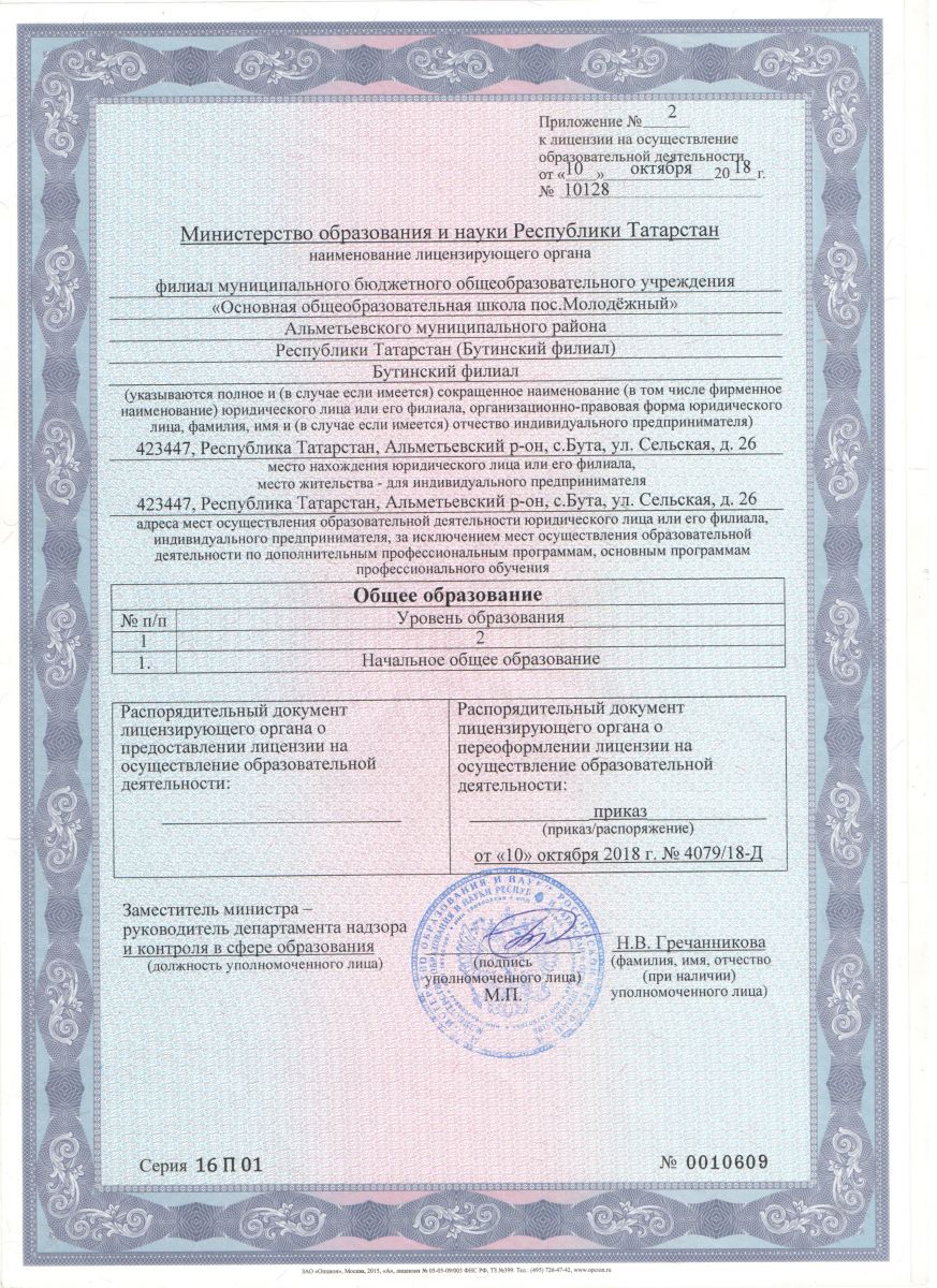| Адрес: | 1.Альметьевский район,пос.Молодежный улица Школьная д 1 а ; филиал с. Бута. улица Сельская д 26 |