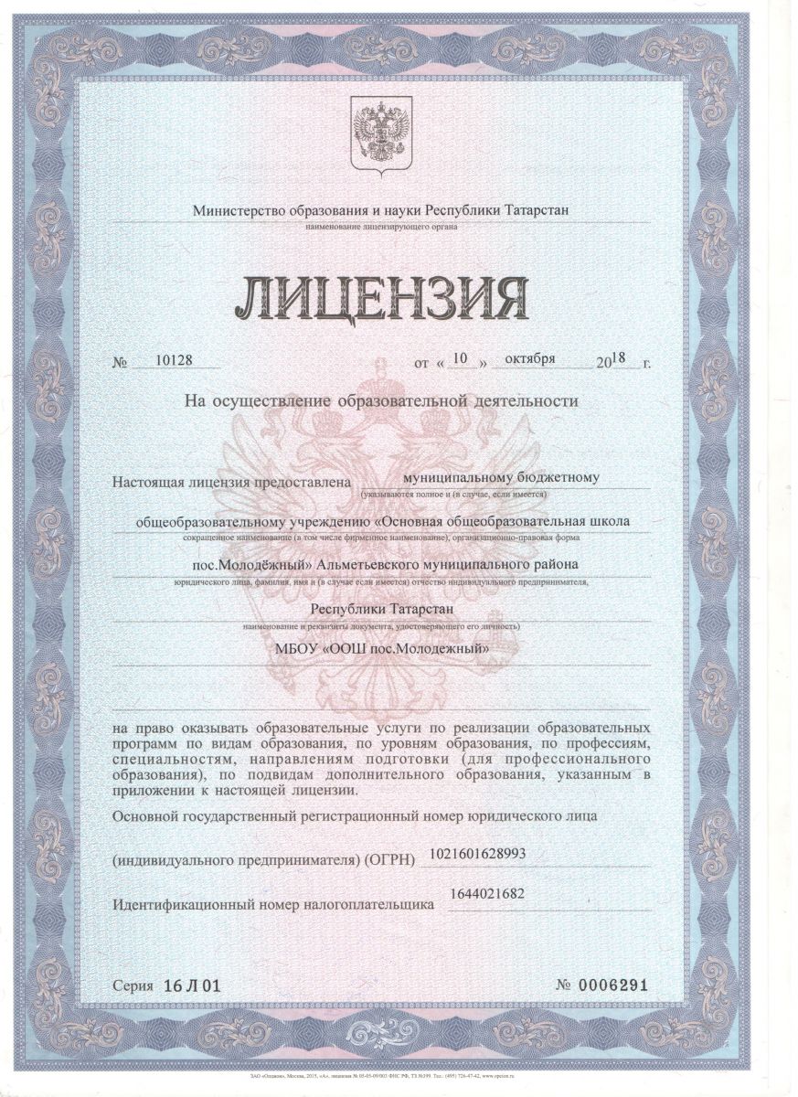 Муниципальное бюджетное общеобразовательное учреждение «Основная общеобразовательная школа пос. Молодежный» Альметьевского муниципального района РТ