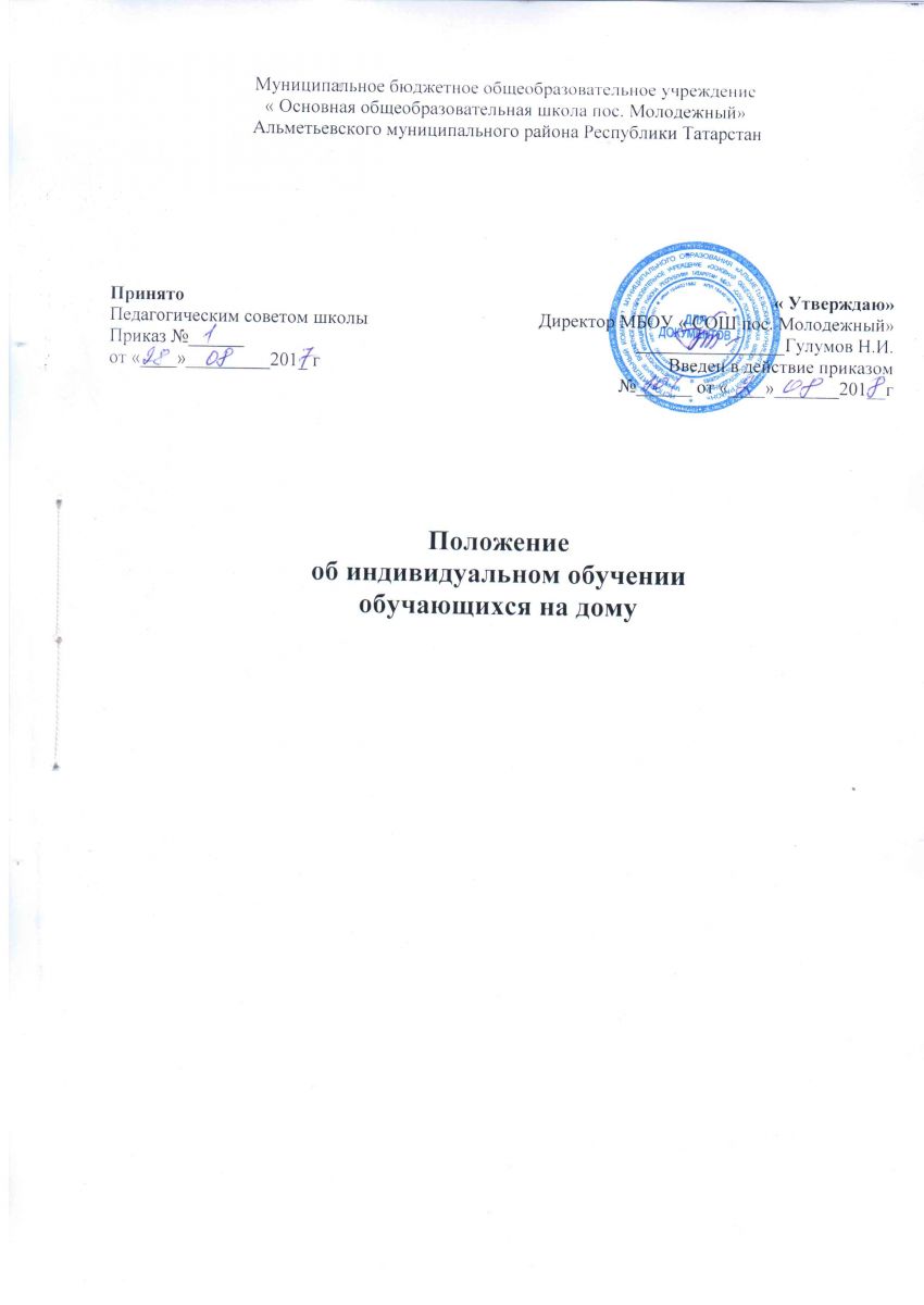Положение о семейном образовании, самообразовании и организации промежуточной и итоговой аттестации экстернов.