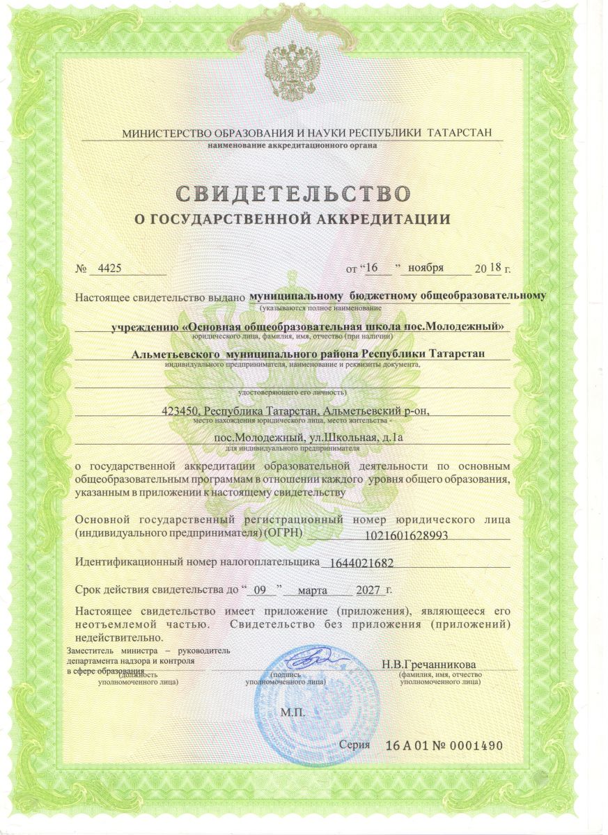 Муниципальное бюджетное общеобразовательное учреждение «Основная общеобразовательная школа пос. Молодежный» Альметьевского муниципального района РТ