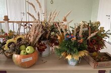 Яркий творческий конкурс «Осенний букет» прошел в нашей школе. В конкурсе приняли участие учащиеся с 1 по 4 класс. Хочется отметить, что участники подошли к этому конкурсу с душой и любовью. Каких только букетов не было на выставке! Один букет лучше другого! А ведь все они из осенних цветов. Осенние букеты — это удивительные композиции, которые способны сочетать в себе все дары осени: цветы, листья, ветки, ягоды, овощи и фрукты. Участники конкурса удивили своей фантазией, оригинальностью и творческими способностями. Конкурс показал, как много в нашей школе талантливых мальчишек и девчонок! Все букеты получились очень красочными, яркими, оригинальными, уникальными и разнообразными. Выражаем благодарность всем ребятам, которые приняли участие в этом конкурсе.