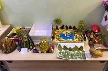 С 18 по 24 октября в нашей школе прошла выставка поделок из природного материала «Дары осени». На выставке были представлены работы детей, созданные совместно с родителями и педагогами. Для создания неповторимых шедевров использовались дары осени – овощи, фрукты, сухоцветы, шишки, мох, ягоды. В каждой работе прослеживалась творческая индивидуальность и фантазия каждого ребенка. Все работы оригинальны, неповторимы и интересны.