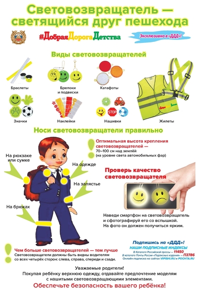 Световозвращатель на одежде - на сегодняшний день реальный способ уберечь ребенка от травмы на неосвещенной дороге. Принцип действия его основан на том, что свет, попадая на ребристую поверхность из специального пластика, концентрируется и отражается в виде узкого пучка. Когда фары автомобиля «выхватывают» пусть даже маленький световозвращатель, водитель издалека видит яркую световую точку. Поэтому шансы, что пешеход или велосипедист будут замечены, увеличиваются во много раз.