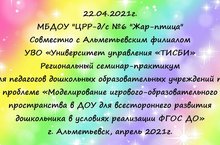 для педагогов дошкольных образовательных учреждений по проблеме «Моделирование игрового-образовательного пространства в ДОУ для всестороннего развития дошкольника в условиях реализации ФГОС ДО» г. Альметьевск, апрель 2021г. -